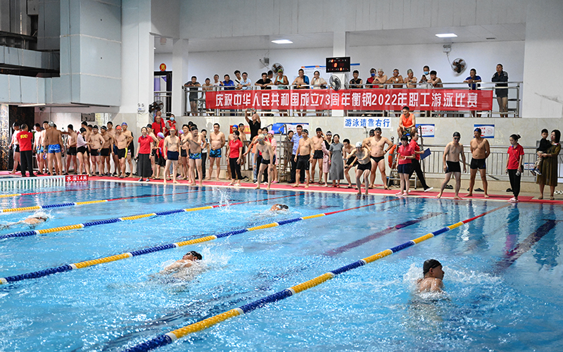 為熱烈慶祝中華人民共和國成立73周年,落實(shí)“健康中國”戰(zhàn)略,豐富和活躍職工業(yè)余文化生活,9月24日,衡鋼工會(huì)組織近200名職工開展游泳比賽。 此次比賽設(shè)置了團(tuán)體接力、領(lǐng)導(dǎo)組及個(gè)人男子、女子組四個(gè)大項(xiàng),共12個(gè)小項(xiàng)。18個(gè)二級(jí)單位工會(huì)的游泳愛好者紛紛報(bào)名參賽。 團(tuán)體4×50米接力賽前...